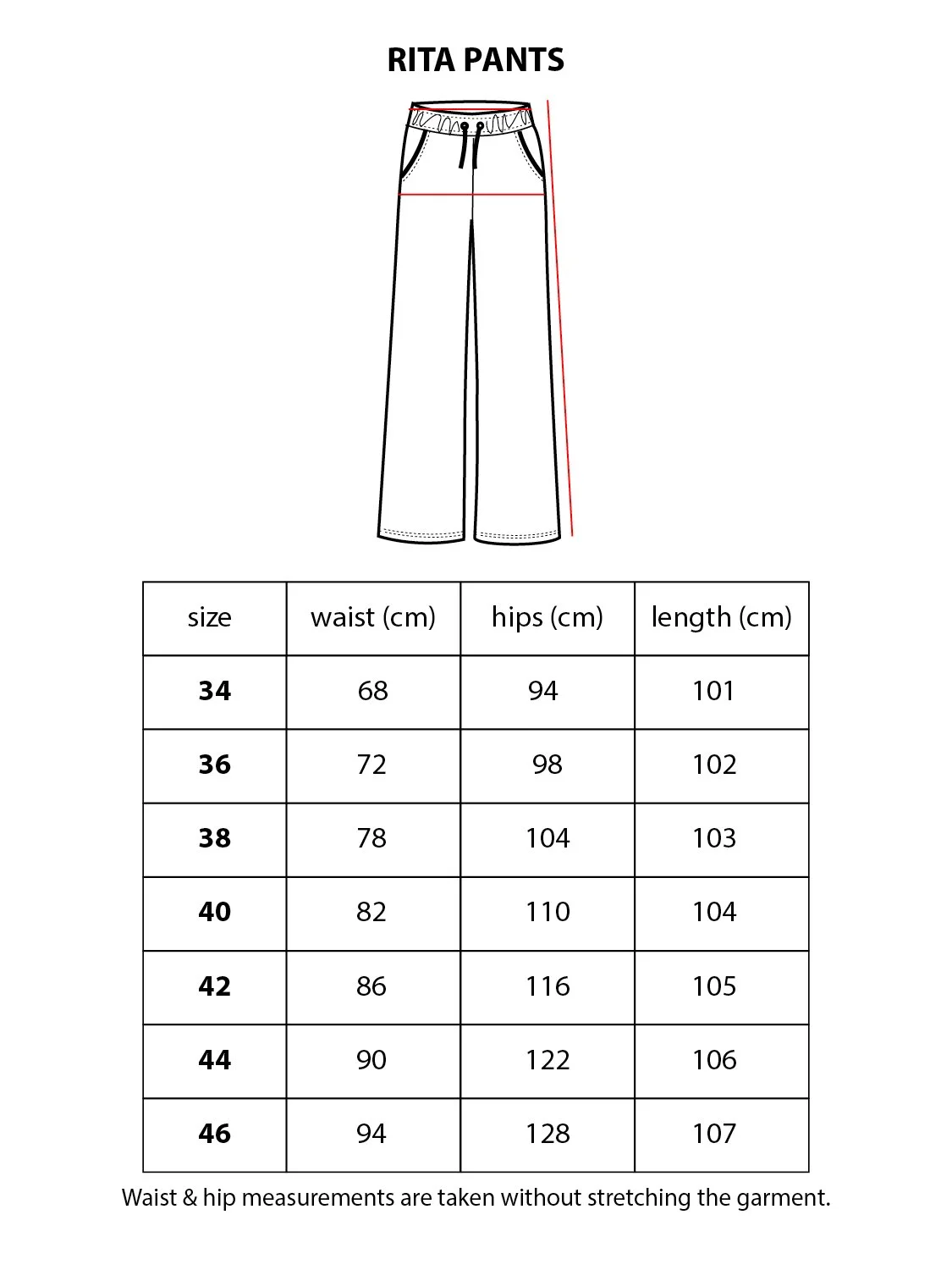 Lilat housut ovat 4cm pidemmät kuin mustat, pituudet merkattu kenoviivalla